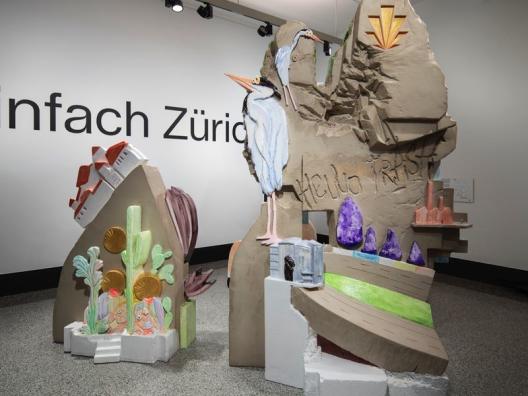 Pourquoi Simple Zurich ? Parce que la vie est suffisamment compliquée. L'exposition commence de manière ludique : avec une sculpture de curiosités et des courts-métrages humoristiques sur les communes zurichoises. La deuxième salle est dominée par un trésor de soixante objets, certains quotidiens, d'autres précieux, points de départ de récits en images entre hier et aujourd'hui, sur la piste des succès de Zurich. Une boîte à pizza fait référence à l'immigration italienne et à son rôle important dans la Zurich moderne. Une somptueuse coupe à boire évoque la révolution des corporations au 14e siècle. Et des portraits de Huldrych Zwingli et d'Alfred Escher nous ramènent à l'époque des bouleversements de la Réforme et de l'industrialisation. Pour finir, une installation spatiale cinématographique rend la réalité perméable grâce à la technologie des nuages de points. De manière spectaculaire, et en quatre voyages - le long de la Töss et de ses anciennes usines, à travers la vieille ville de Zurich, dans les profondeurs insoupçonnées de la gare centrale ainsi qu'au fond du lac et vers l'approvisionnement en eau. Einfach Zürich est un portrait en mouvement qui invite à la participation.